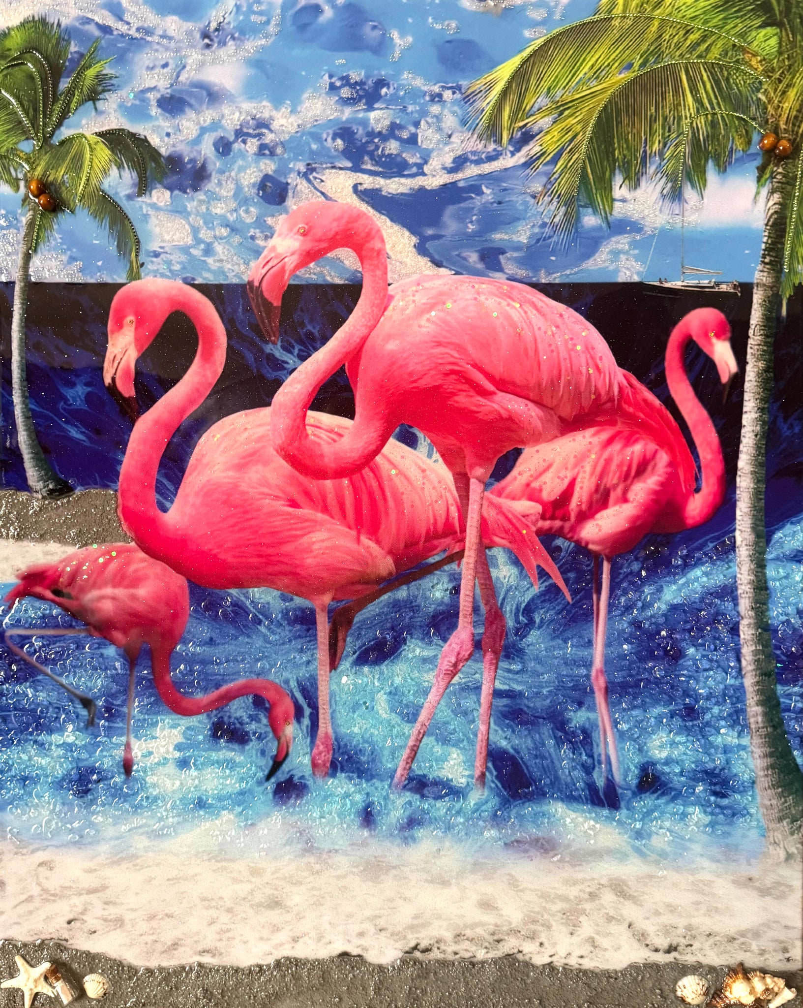 30x24 Digital on canvas embellished with sand, seashells, rhinestones, holographic flakes, crushed glass, and resin. 1 of 2