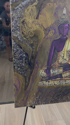 30x24 Acrylic on canvas embellished with rhinestones, spray paint, gold leaf, crushed glass, and resin.